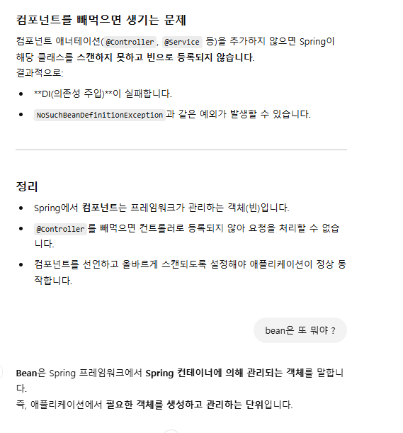 @Controller 와 같은 컷을 뺴먹으면 컴포넌트가 스캔을 할 수 없다 .