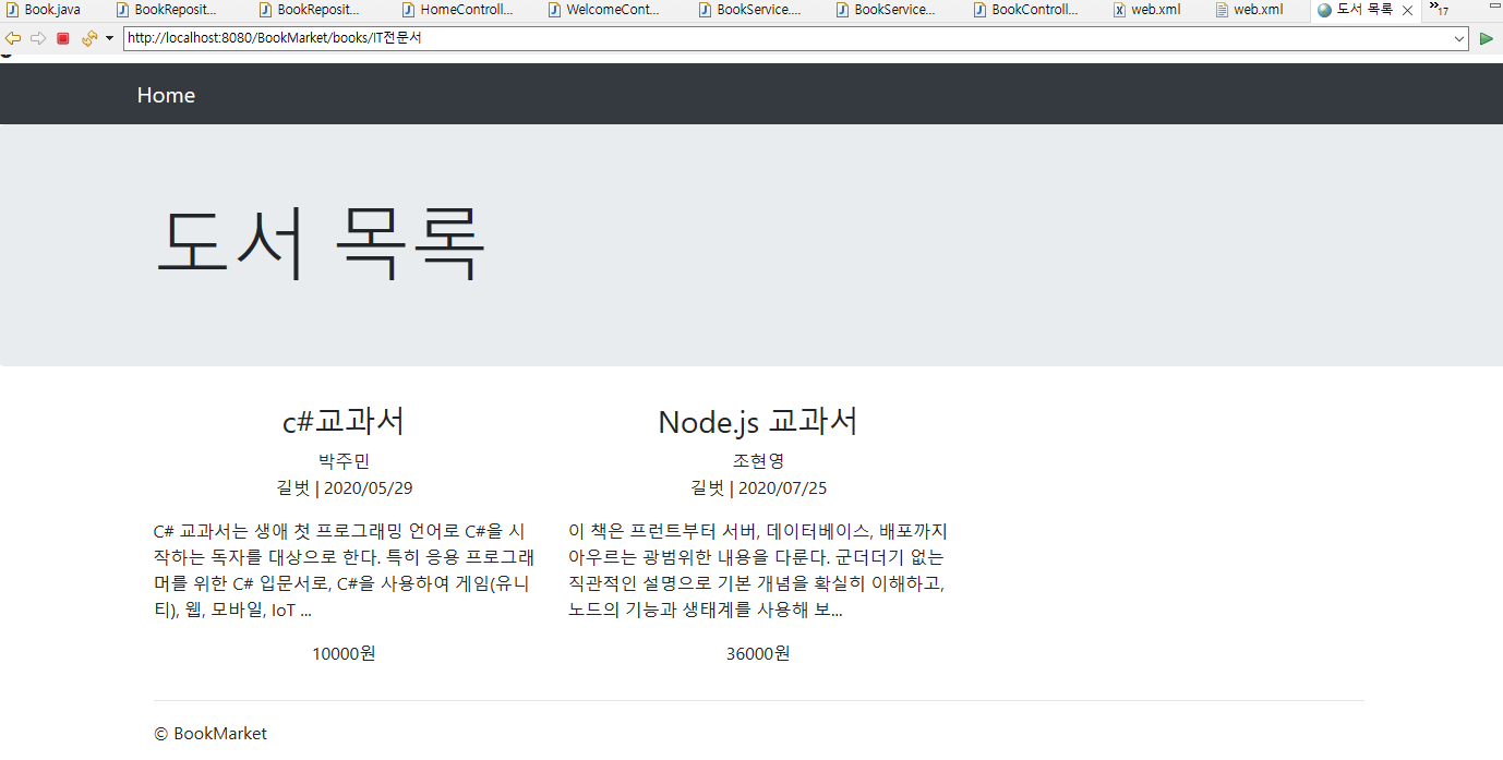 Spring 도서쇼핑몰 실습 예제 2 / 컨트롤러 과정 / (0) | 2025.01.09 |