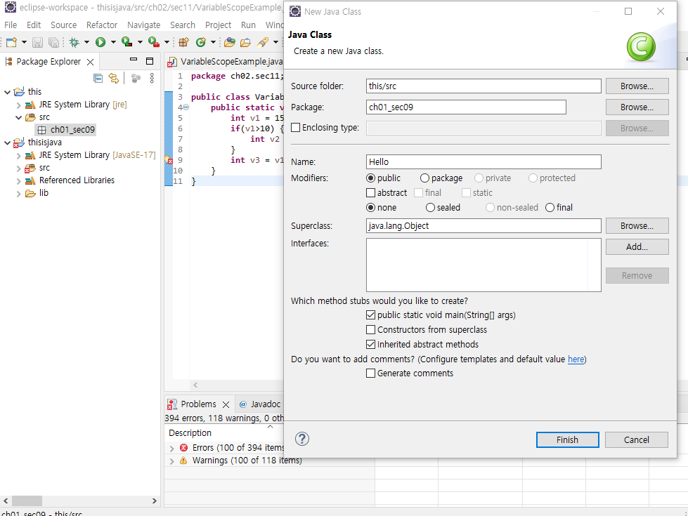 2. 이클립스에서 프로젝트 밑 클래스 생성