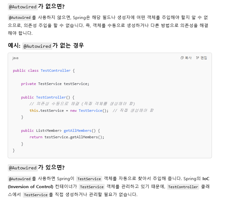 // TestService를 주입받기 위한 @Autowired 어노테이션