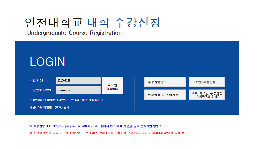 인천대학교 수강신청