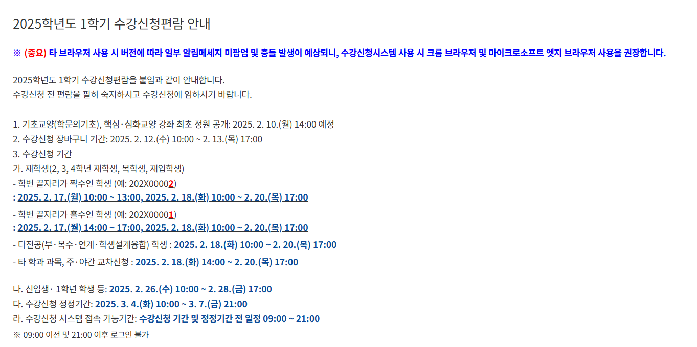 수강신청 당일에는
