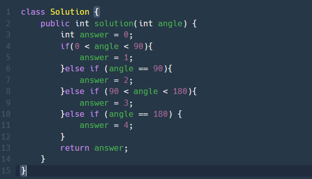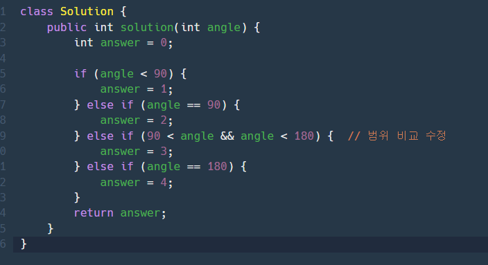 90 < angle < 180 식으로 적게 되면